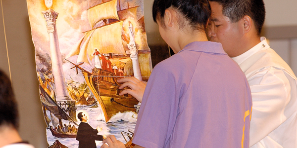 「你答得對!」鮑思高神父評論道:「只是要更改一個措辭,即敵艦代表教難。教會正面對著許多嚴重的考驗!迄今所受的與那將來要發生的比較起來,簡直是微不足道。只有兩個方法可使我們在這麼大的困難中獲救的,就是恭敬聖母和勤領聖體。」 姚惠民司鐸編譯,《聖鮑思高傳》第三冊,240-241 頁。 |