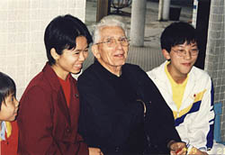 胡神父默默耕耘,在上主的感召下,在澳門建立起基督的神國,不但為無數青少年提供衣食所需,還為他們帶來精神食糧和信仰救靈的大恩,使他們成為「良好的公民、虔誠的信徒」。 據了解,澳門政府和世界各國不同機構,為了表揚他對弱勢社群的貢獻,曾頒給他不少奬項、榮譽勳銜,但他全都視之如敝屣,全不以為然。筆者曾向他查問有關獎章,好拿來看看,分享一下他的成功。他只是輕描淡寫地打趣說:「全部都不見了!」 二、拿着「外國護照」的「中國人」 胡子義神父是意大利人,在西西里島的加達尼亞長大,二十歲就來到中國傳教。可能由於初期的傳教士沒有足够時間學習中國語言、文化,而且胡神父一開始就輾轉在上海、韶關工作,後來才回到港、澳地區,所以他的廣東話始終說得不太好,書寫更是執筆忘字。但他深深明白傳教士必須融入當地語言文化的大道理,所以他堅持在任何場合都說廣東話,在講道中只會夾雜一兩句他最愛的口頭禪「Jesus Loves You 」、「I Love Jesus」。他喜歡和我們一起念中文日課經、唱中文歌,在修和聖事中唸中文赦罪經。筆者有時為了方便溝通,會用意大利文與他交談,但他見到有中國人在場時,一定會立即用中文回答,表示對當地人民和文化的尊重。