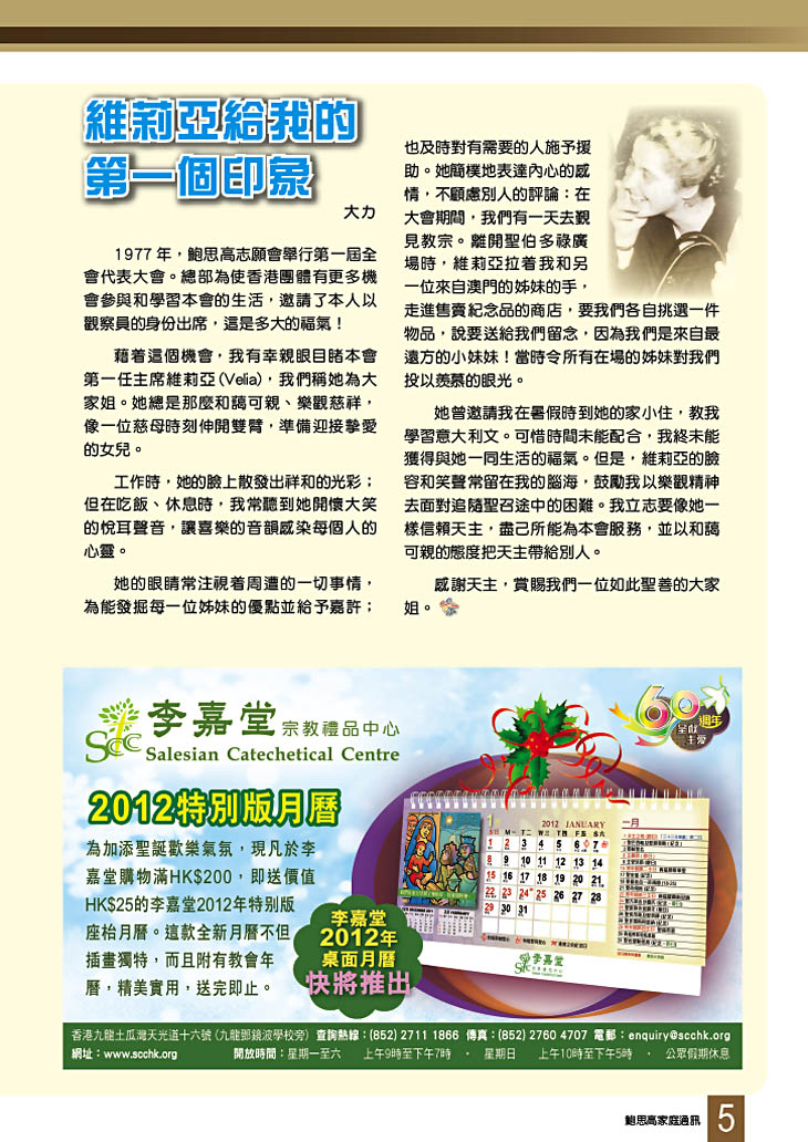 鮑思高家庭通訊 • 第二百二十五期 舒卷話題 一位未來總會長的聖召 女兒們的心底話 我們與聖人相遇 維莉亞給我的第一個印象 森林奇遇記 鳴謝 塞外人語:生日禮物 普世青年節慈青朝聖之旅 曼谷會議的奇蹟與感恩 Bye Bye 暑期天2011 飆歌飆戲 圓一個鮑聖夢 三年準備邁向鮑思高神父誕生 200 週年 中華會省發起 DB2015 籌款運動 陳日君樞機禁食72小時 世界之窗 胡德賢修士安息主懷 好書介紹:《執手共勉……與子偕老》 天父也用MSN:智者與愚人 愛女矢發修道初願記 謝主厚恩 一次旅程 四種體驗 原來聖人也會開玩笑 菲人菲事:貧中有樂 伴青年同行系列:傷健同樂 零極限的自然養生法