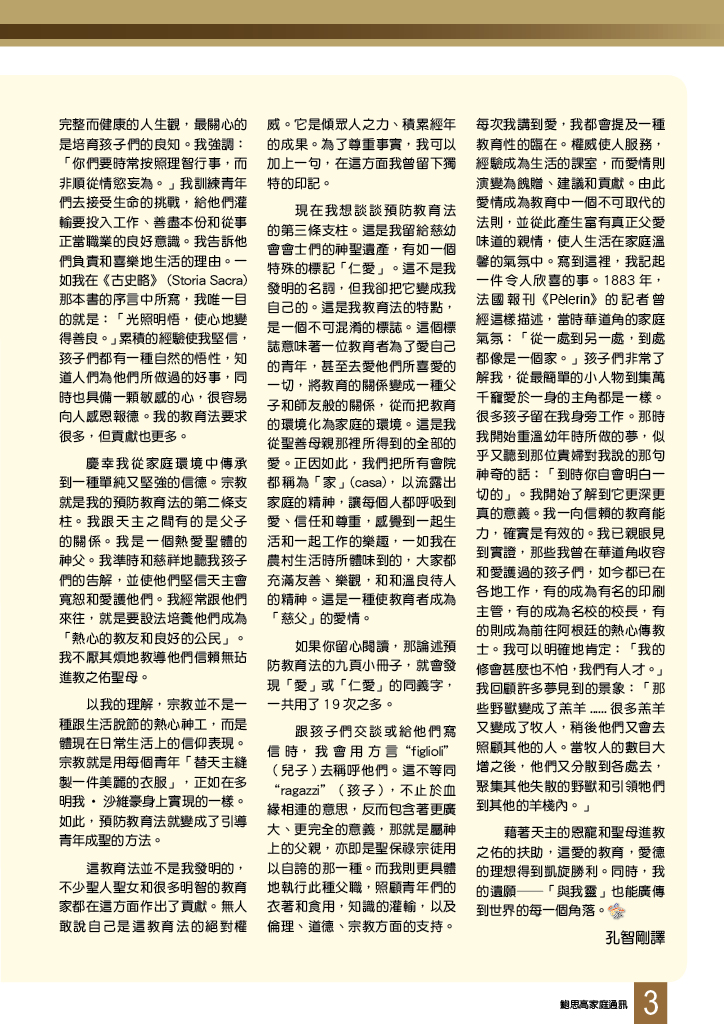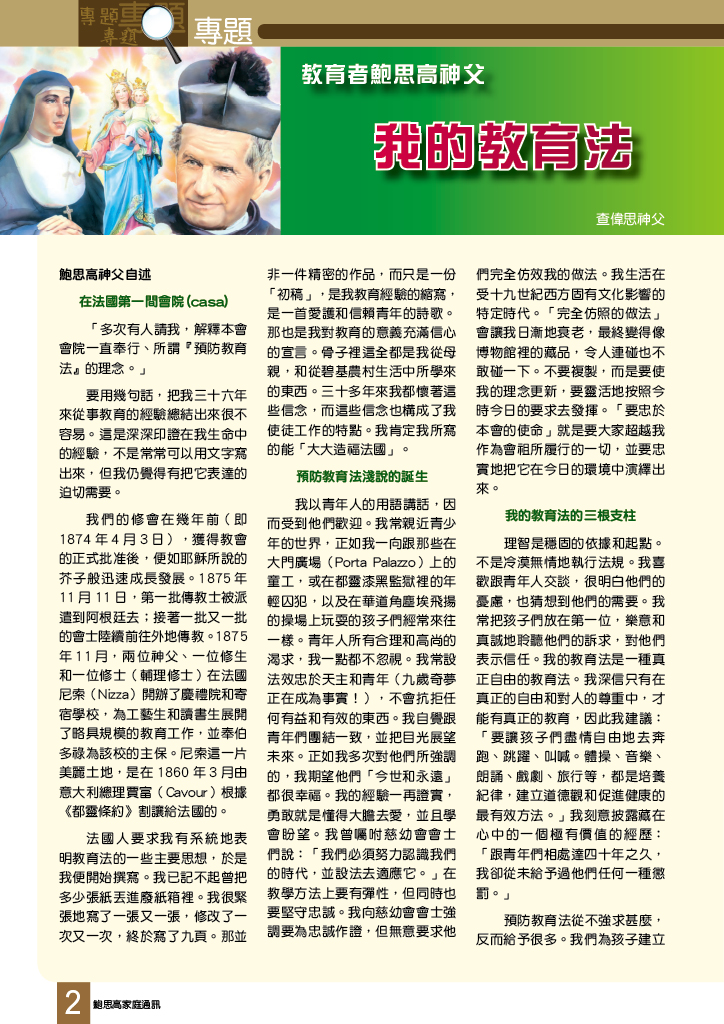 鮑思高家庭通訊 • 第二百三十六期 舒卷話題 我的教育法 夢建造:堅持夢想 不是痛苦而是堅忍使人成聖 原來聖人也會開玩笑:領帶的用途 讀者心聲 鳴謝 大家庭慶祝會祖誕辰 母佑會八月五日慶典 母佑來華傳教 90 周年(台灣) 歐洲朝聖之旅 慈青領袖訓練營 2013 把最好的給你 東涌慶禮院 「信德年信仰培育課程」分享(一) 「感謝慈幼大家庭!」 賈利哀勞11:美麗的黑色世界(下) 聖母媽媽親自帶領著我(上) 世界之窗 塞外人語:白白勞苦? 天父也用Whatsapp:唔話得(II) 教子有方:學習的氛圍 天意難測 唯憑主愛 悲慘的童年 燦爛的父愛 願你平安
