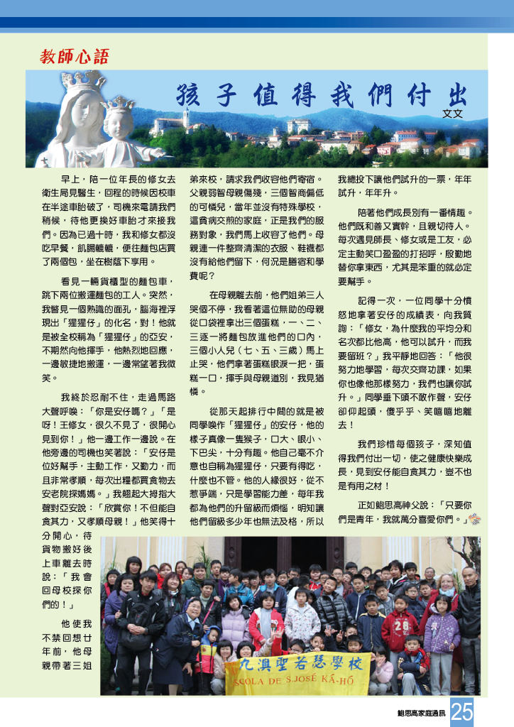 鮑思高家庭通訊 • 第二百三十七期 舒卷話題 備受青年愛戴的人賺得一切 原來聖人也會開玩笑:魔鬼去度假 夢建造:鎖定目標 要讓青年明白罪惡的醜陋和德行的美好 鳴謝 慶祝斯德望沈道爾修士列真福品 DB200 慈幼大家庭靈修營 來台金禧閉幕禮 『青活閣』延續鮑聖精神 慈青開學彌撒 自然生態親子營一天遊 開心暑期天 良友之聲廣告 心智醒 聖母媽媽親自帶領著我(下) 「思展藝能 高才盡演」 「信德年信仰培育課程」分享(二) 鮑思高預防教育法研討會 賈利哀勞 11 塞外人語:恩將仇報 世界之窗 讀者心聲 天父也用 Whatsapp 教師心語:孩子值得我們付出 告別悲慘童年 重獲新生命 拿出自己的五餅二魚