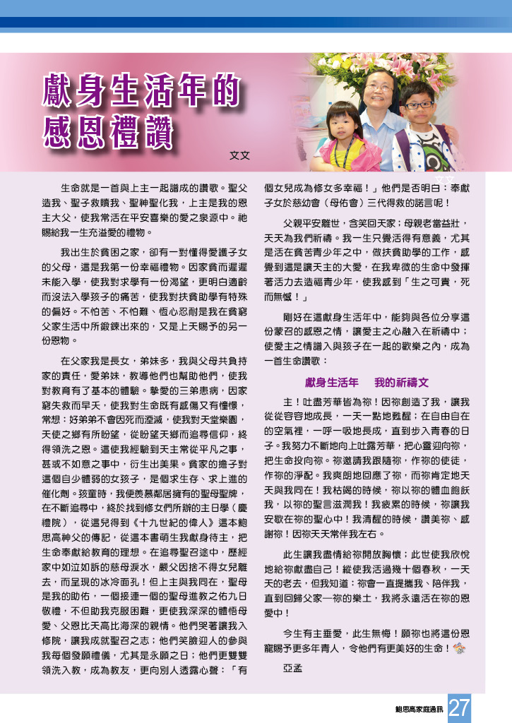 鮑思高家庭通訊 • 第二百四十五期 舒卷話題 飛得更高更遠 我們都是傳教士 夢建造:奇夢成真 「完全奉獻」給青年 鳴謝 DB200 聯校競技日 慶祝會祖瞻禮紀盛 慈幼大家親 心傳青年心 在喜樂中慶祝會祖誕生二百周年 鮑思高 ─ 會作曲的聖人 鮑思高瞻禮慶祝會 慈幼大家庭神修日 澳門團體慶祝胡子義神父百歲壽辰 「臥底」的生活 親子感恩活動 瞳創精彩人生創作比賽 「模擬人生」生涯規劃活動 正能量訓練營 公教老師聚會 台灣在地深耕羅蘭十年有成 塞外人語:DB200 紀念碑揭幕 蒙古慶禮院 @ 鮑思高瞻禮 賈利哀勞11 世界之窗 讀者心聲 聖召分享:三十功名塵與土 八千里路雲和月 天父也用 Whatsapp:話語 奉獻生活年的感恩禮讚 第三誡:這是天主恩寵的日子