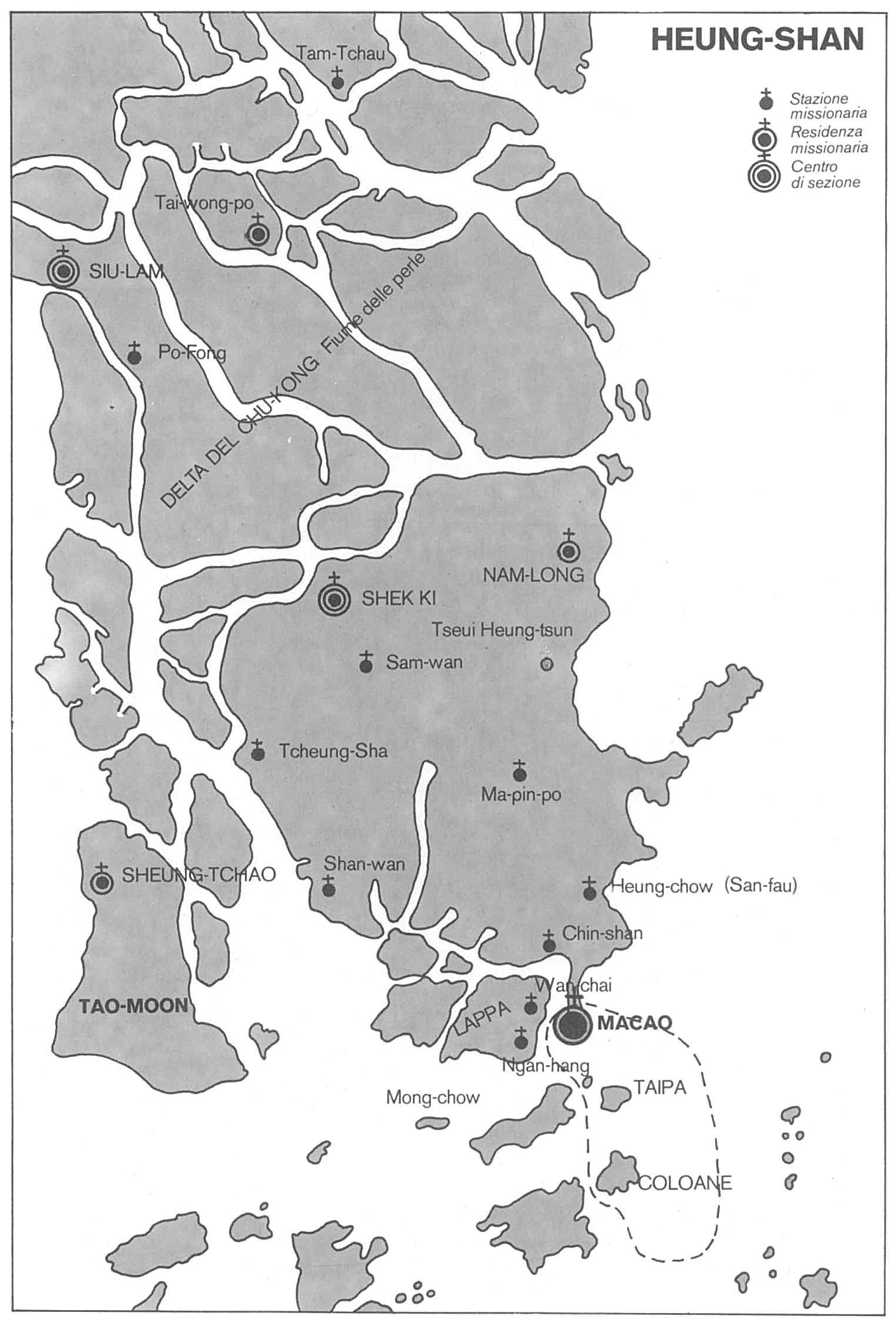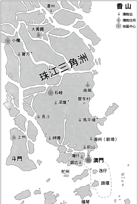 香山是廣東省的一部分;它位於廣州以南,澳門以北,是國父孫逸仙(Sun Yat Sen,又名孫中山)出生的地方,故最近改以他的名字命名。該地區主要範圍還包括廣闊的珠江三角洲。(2) 這條河錯綜複雜的支流,一度使這地區看起來像一群島嶼,並形成了四通八達的交通網絡,連接著廣州與中國沿岸各地區。該地區的南面和西面有著許多大小不同的島嶼,傳教士當時可利用海路來往各地。