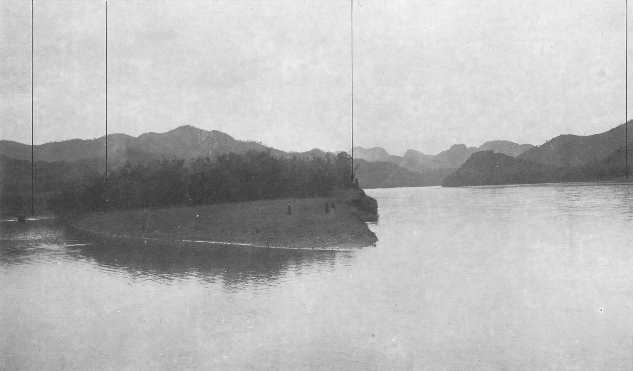 逆流而上的情況也不困難,兩個船夫推著船前進,其他的船夫上岸,用兩根綁在桅杆上的竹繩把船拖向前。