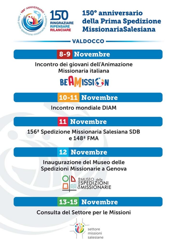 11月12日,慈幼會總會長歐達德神父和母佑會總會長賈素娜姆姆,將陪同新出發的傳教士們前往熱那亞──當年第一批傳教隊伍啟航的港口。下午,位於熱那亞慈幼會院的慈幼傳教博物館將對外開放,標誌著慈幼傳教事業邁向新的里程碑。
