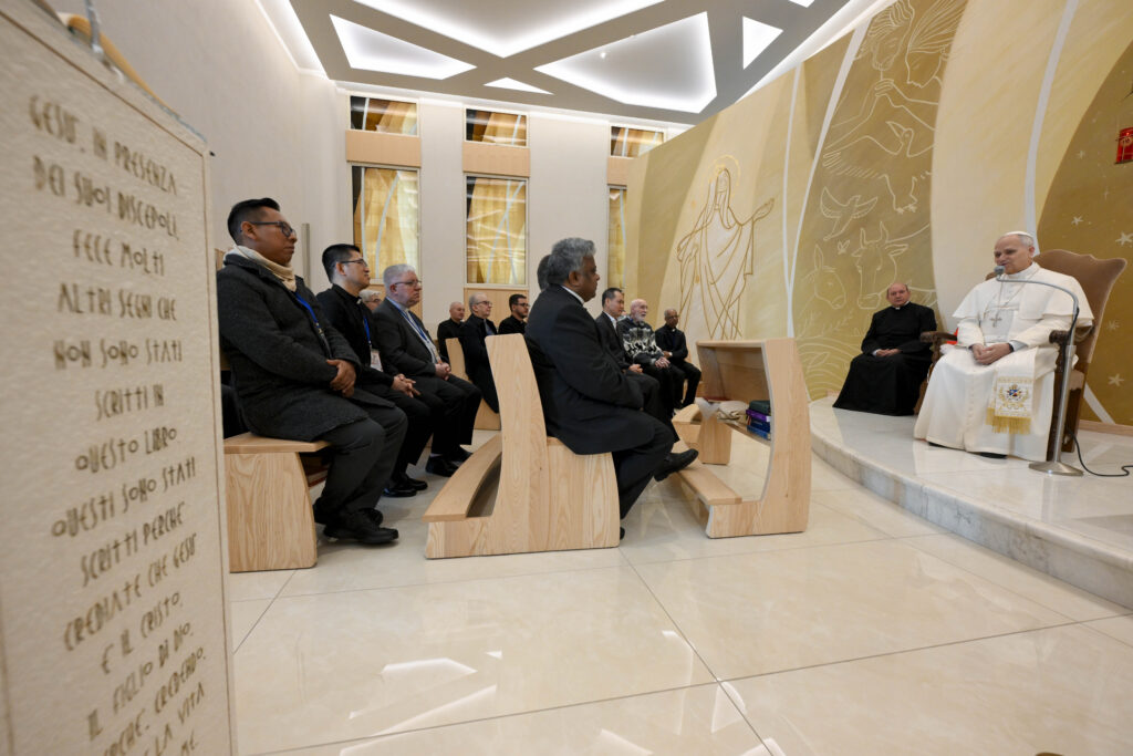 In his address, Pope Leo XIV began with the words of the Gospel of John (20:30-31), inscribed on the ambo of the chapel: “Jesus, in the presence of his disciples, performed many other signs that are not written in this book… these have been written so that you may believe.”