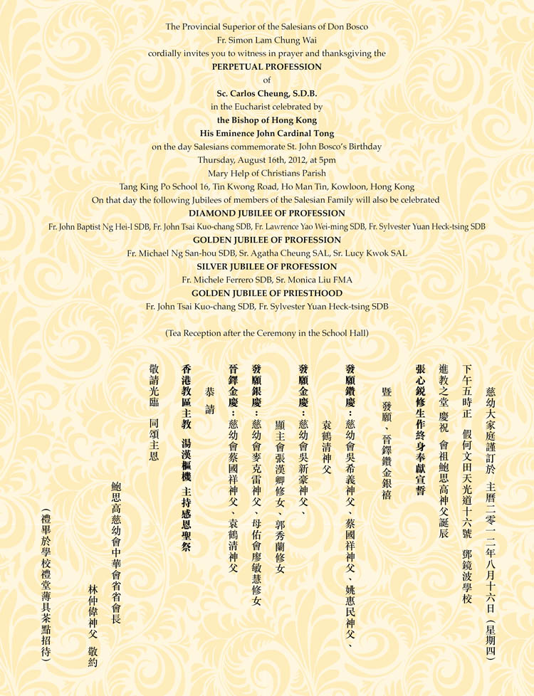 經歷:1996 年中三時加入慈幼會維豪備修院,