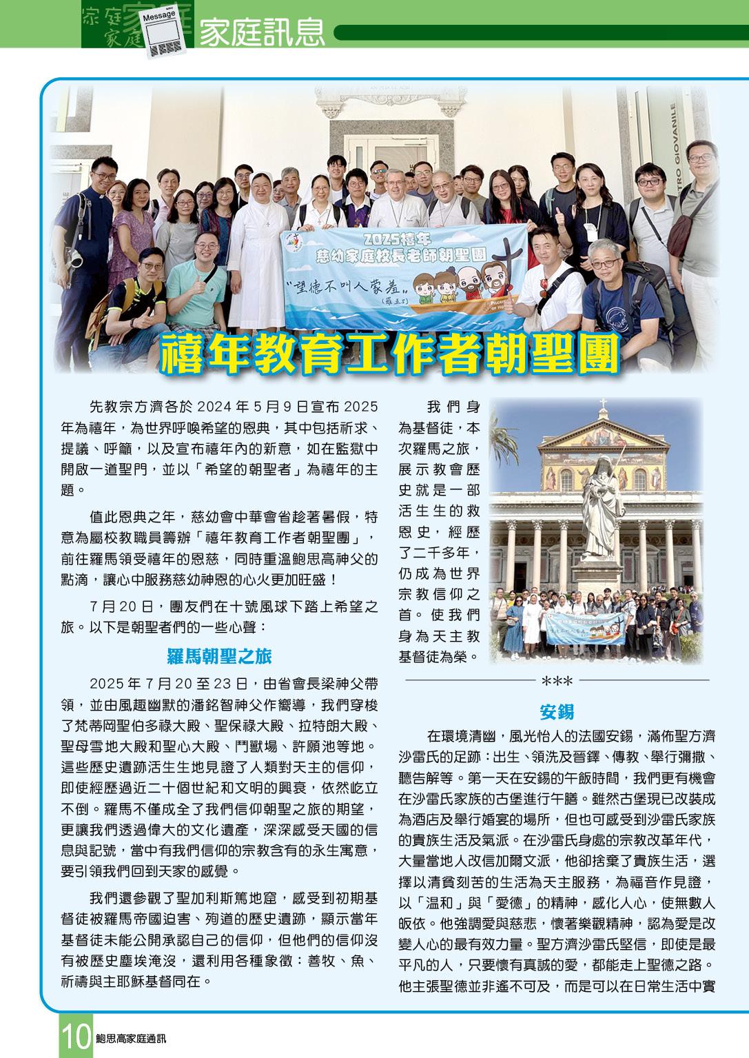 值此恩典之年,慈幼會中華會省趁著暑假,特意為屬校教職員籌辦「禧年教育工作者朝聖團」,前往羅馬領受禧年的恩慈,同時重溫鮑思高神父的點滴,讓心中服務慈幼神恩的心火更加旺盛!
