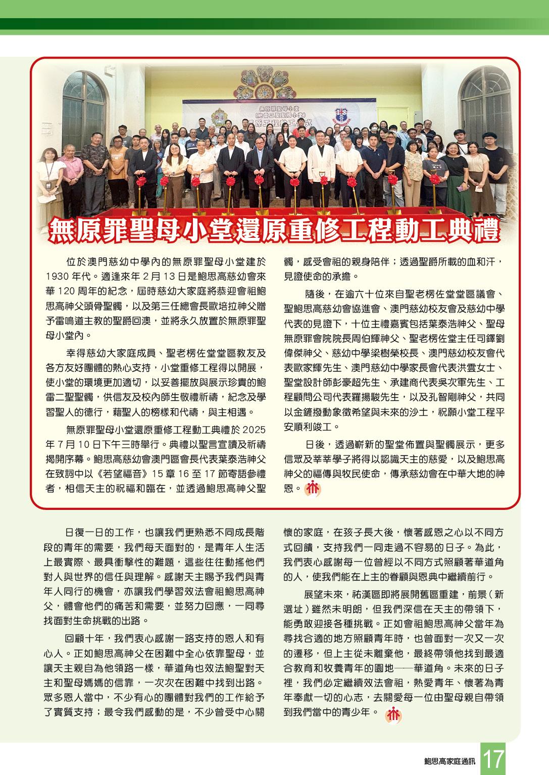 日後,透過嶄新的聖堂佈置與聖髑展示,更多信眾及莘莘學子將得以認識天主的慈愛,以及鮑思高神父的福傳與牧民使命,傳承慈幼會在中華大地的神恩。