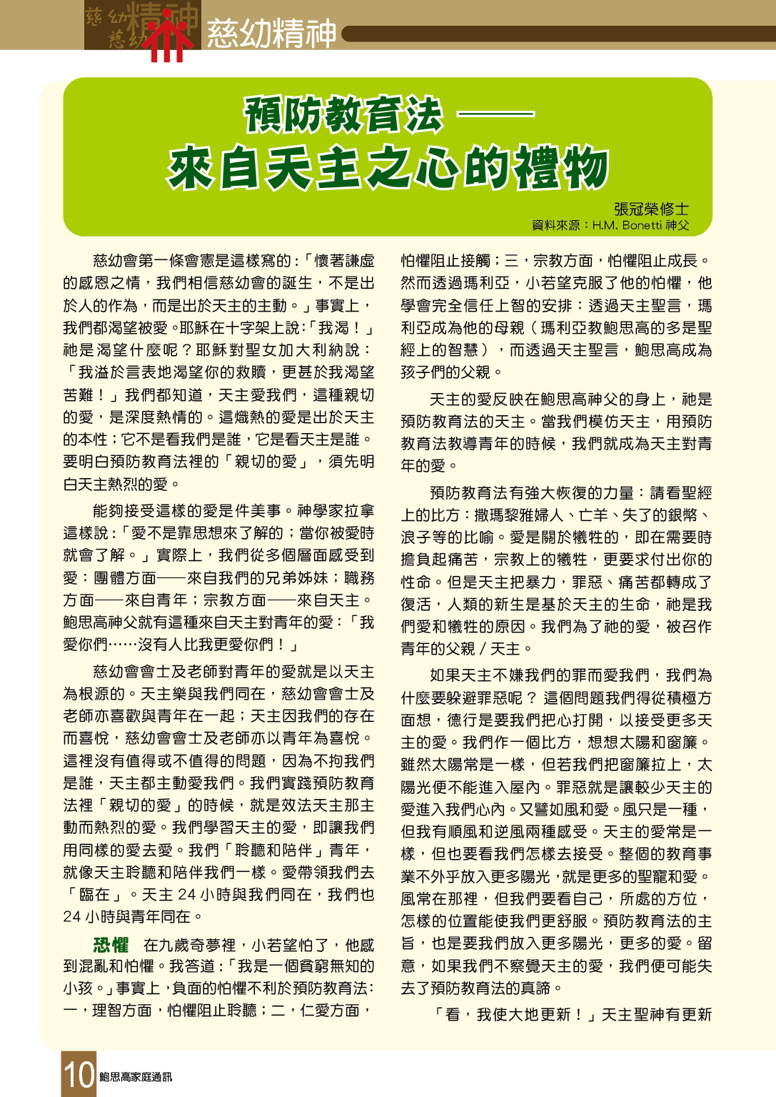 天主的愛反映在鮑思高神父的身上,祂是預防教育法的天主。當我們模仿天主,用預防教育法教導青年的時候,我們就成為天主對青年的愛。