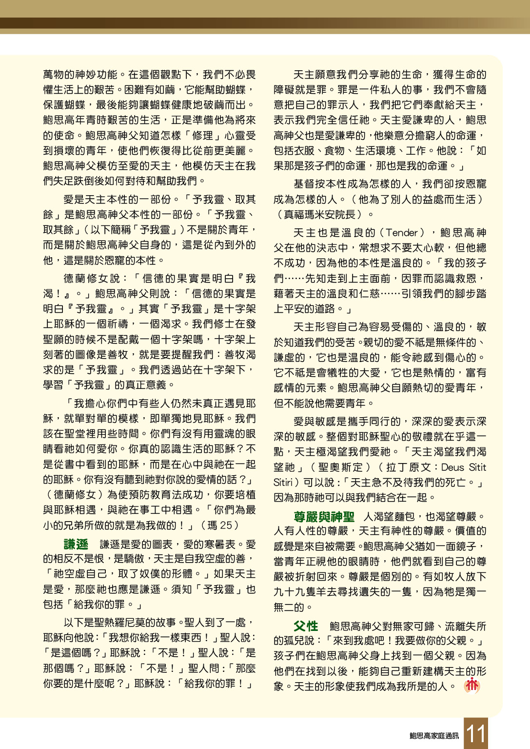 天主願意我們分享祂的生命,獲得生命的障礙就是罪。罪是一件私人的事,我們不會隨意把自己的罪示人,我們把它們奉獻給天主,表示我們完全信任祂。天主愛謙卑的人,鮑思高神父也是愛謙卑的,他樂意分擔窮人的命運,包括衣服、食物、生活環境、工作。他說:「如果那是孩子們的命運,那也是我的命運。」