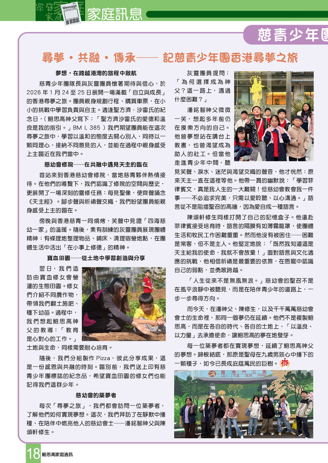 2026年,慈青少年團在牧民主題「以堅定的望德,與青年踏上朝聖之路」的召喚中,走過了一段充滿學習與陪伴的旅程。