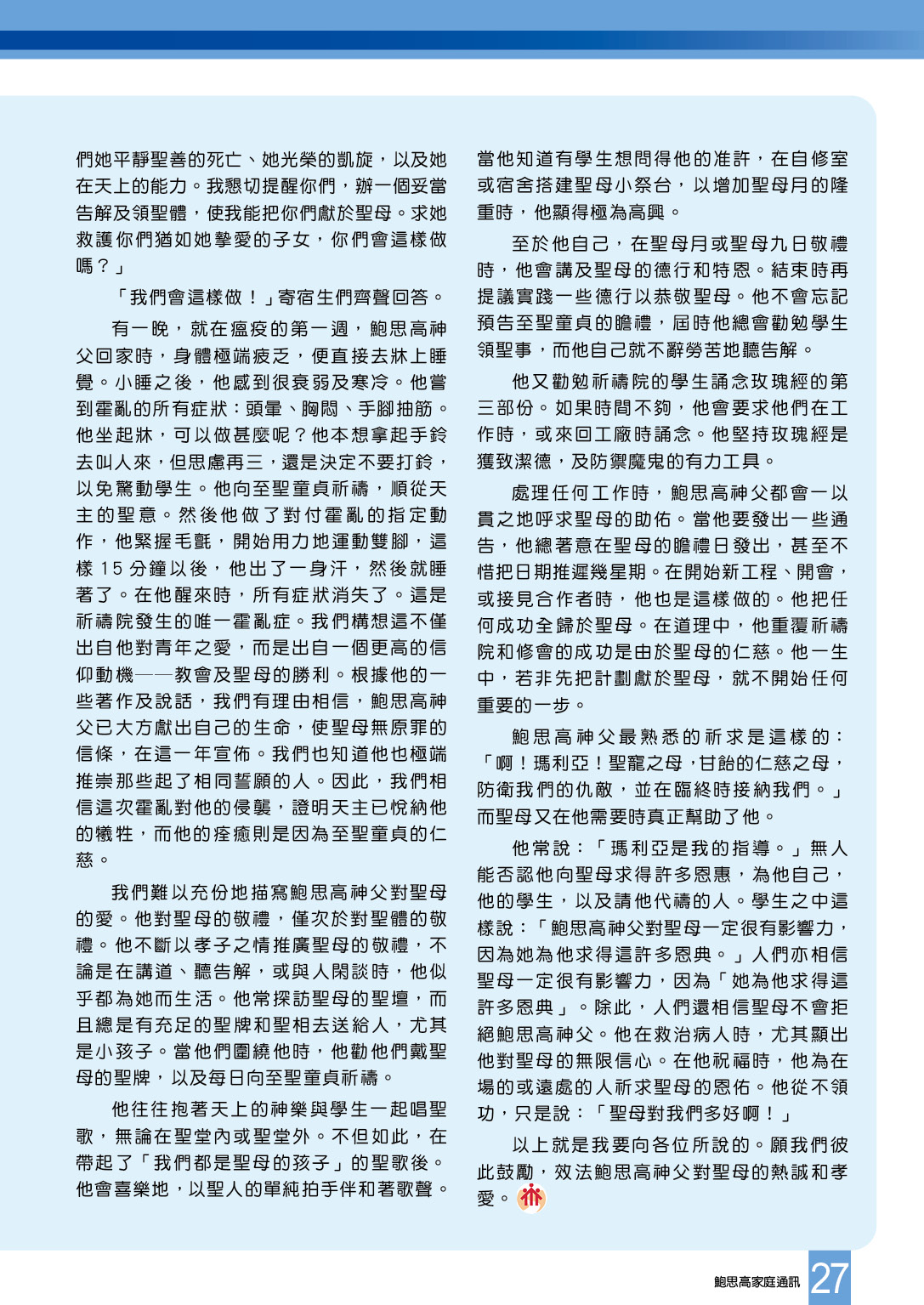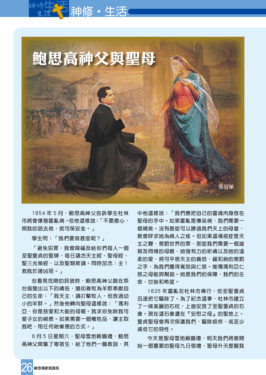 以上就是我要向各位所說的。願我們彼此鼓勵,效法鮑思高神父對聖母的熱誠和孝愛。