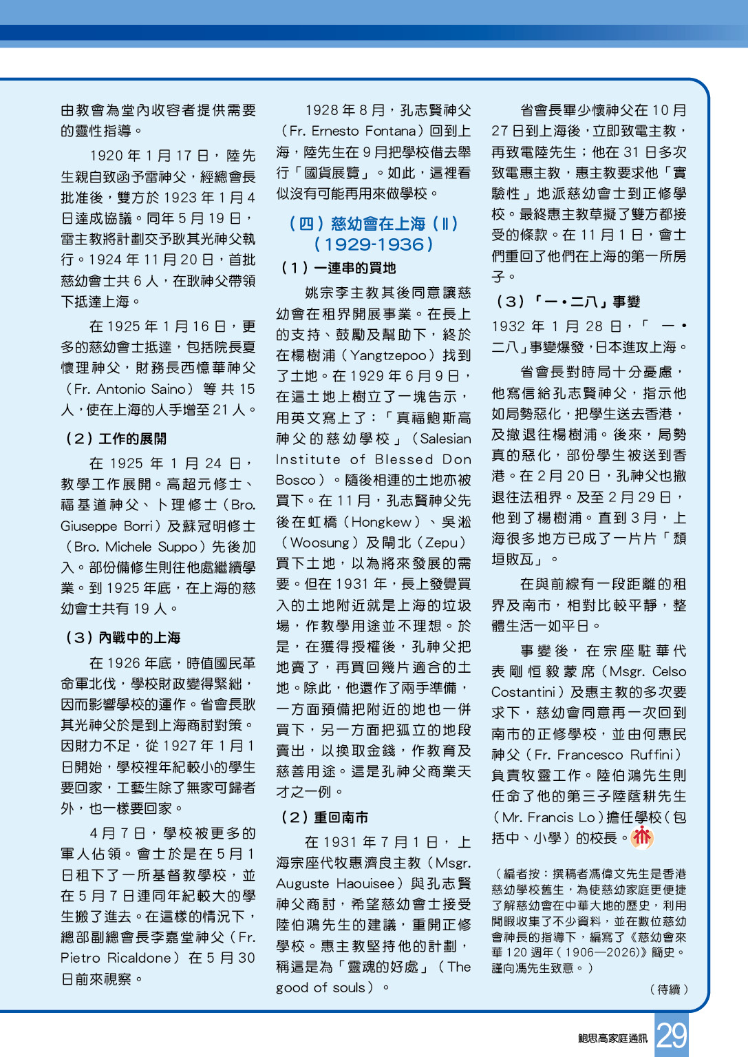 (四)慈幼會在上海(II)(1929-1936)