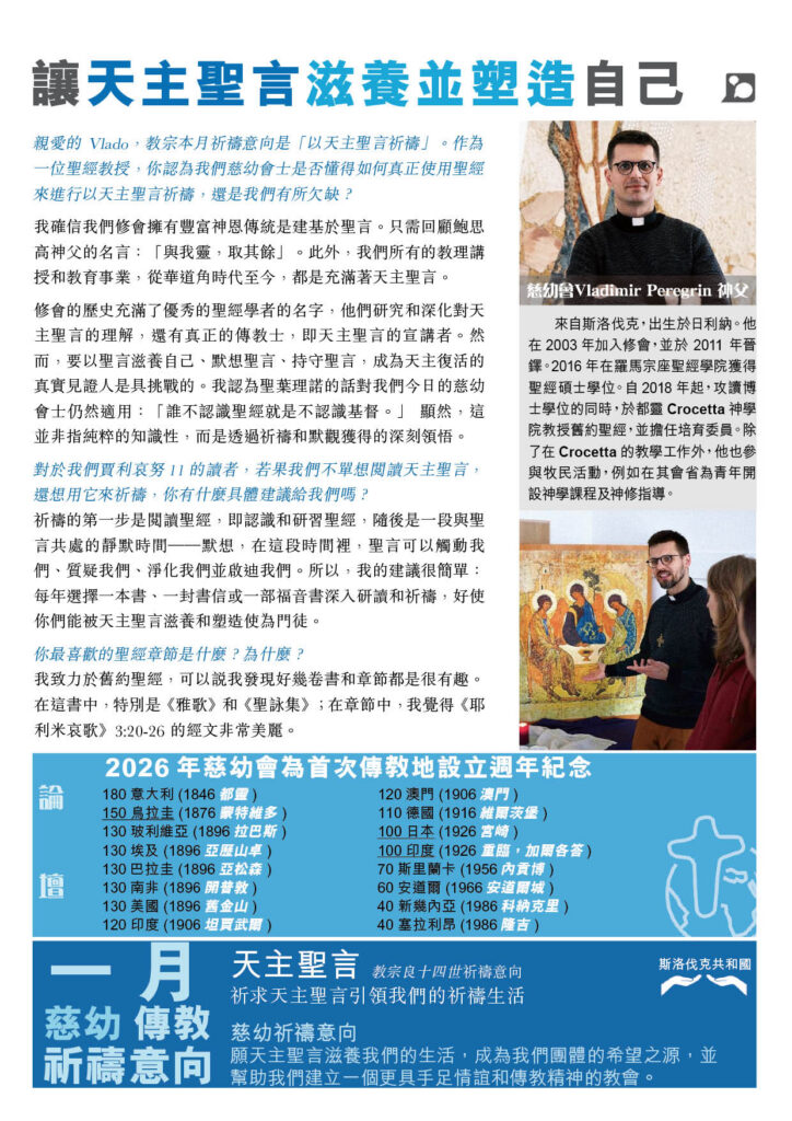 親愛的 Vlado,教宗本月祈禱意向是「以天主聖言祈禱」。作為一位聖經教授,你認為我們慈幼會士是否懂得如何真正使用聖經來進行以天主聖言祈禱,還是我們有所欠缺?